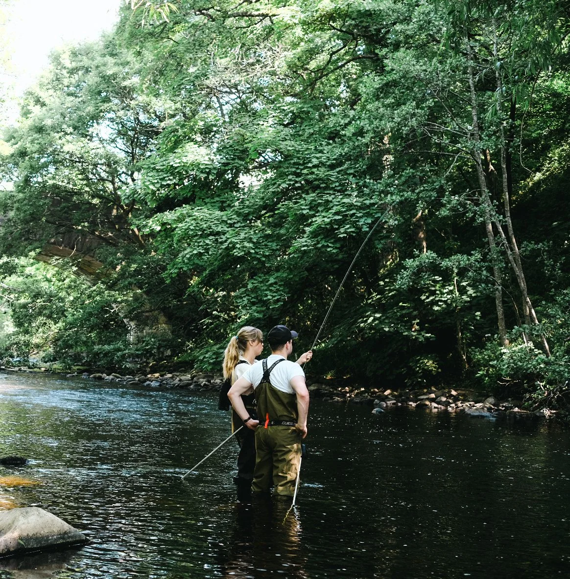 “What a great couple of days of fishing. From the moment they greeted us Oscar and Nell made the whole group feel completely relaxed and at ease. Any nerves or pre-conceptions around what is expected when fly fishing were completely forgotten. Oscar and Nell were fantastic tutors - patient and good humoured but so invested in our success they were almost more excited than we were when we caught a fish. By the end of a delicious riverside picnic lunch Oscar and Nell were all but part of our group. Their knowledge of the water and fly fishing is second to none - even more so their ability to explain it to complete novices.